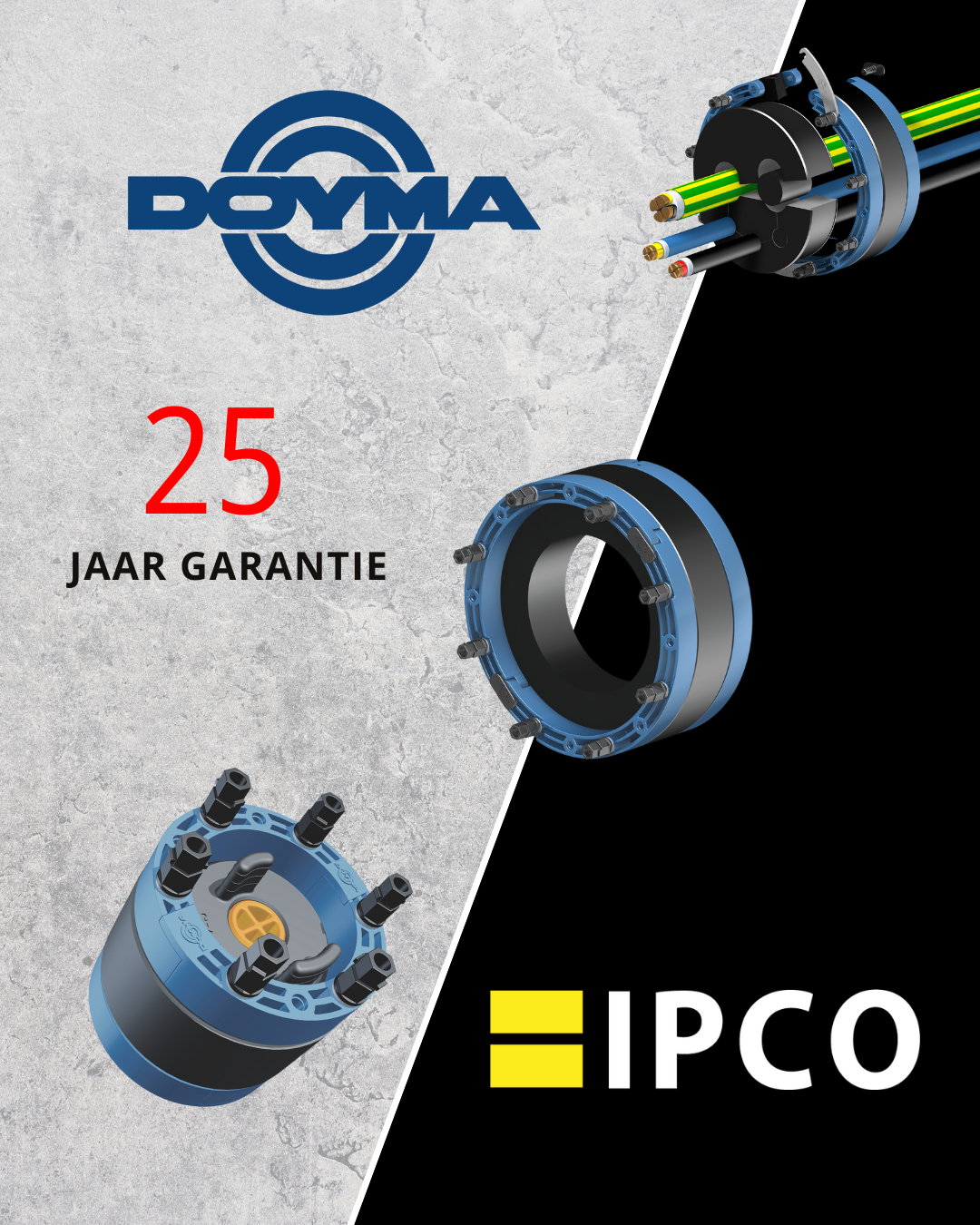 Met trots kondigt IPCO aan dat wij de officiële distributeur zijn van DOYMA, dé specialist op het gebied van hoogwaardige afdichtingsoplossingen. Met meer dan 60 jaar ervaring levert DOYMA innovatieve producten zoals doorvoeren, kabeldoorvoeren en andere afdichtingen, ontworpen voor ultieme veiligheid, duurzaamheid en installatiegemak. Dankzij onze samenwerking bieden wij u een breed assortiment aan oplossingen die aan de hoogste kwaliteitsnormen voldoen.
