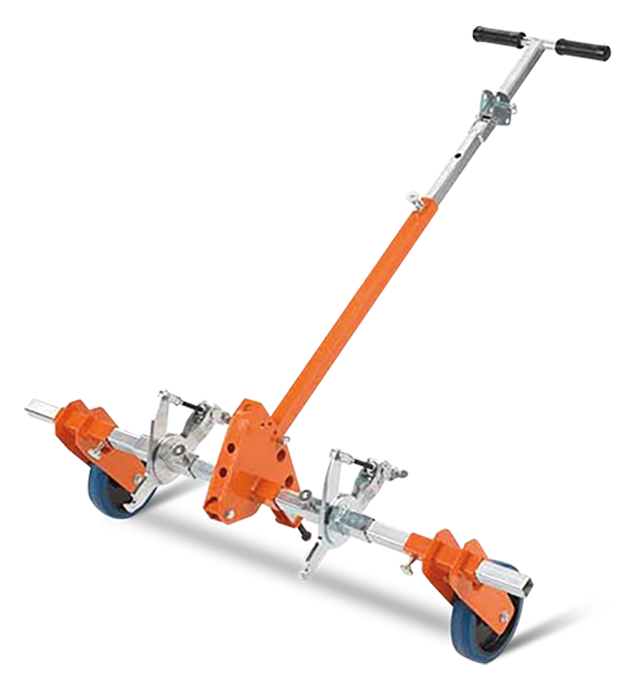 Hendel met wielen voor het tillen van zeer zware en/of geblokkeerde gietijzeren deksels. Geschikt voor gebruik met twee PM400, PM500 of PM1000 magneten of in een speciale configuratie met twee mechanische haken.